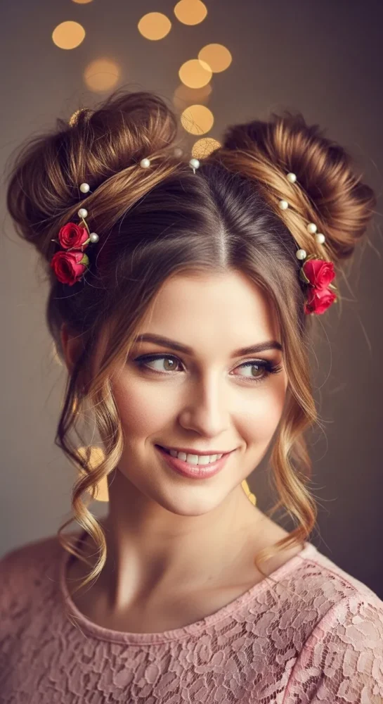 Space buns can feel playful and cute when styled softly. Keep them low and slightly undone for a romantic, wearable version.
