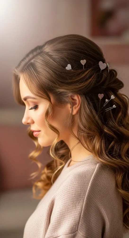Claw clip styles are trending for a reason—they’re quick, comfortable, and stylish. Choose a neutral or pearl clip for a romantic Valentine’s feel.