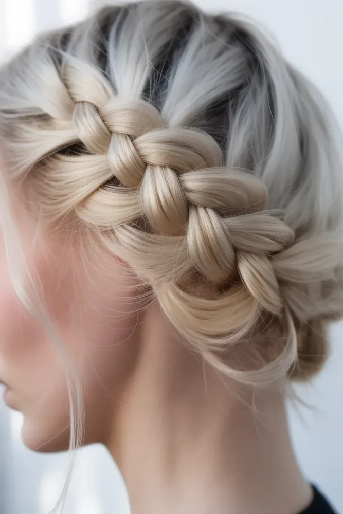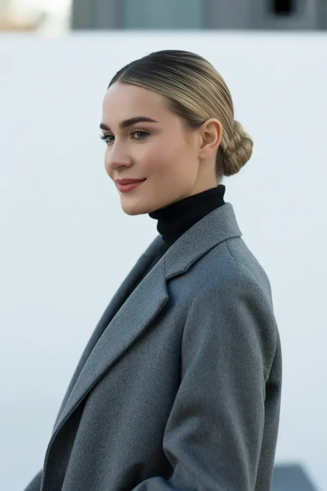 Braiding before twisting into a bun adds detail and grip. It stays neat all day, even under scarves and coats.