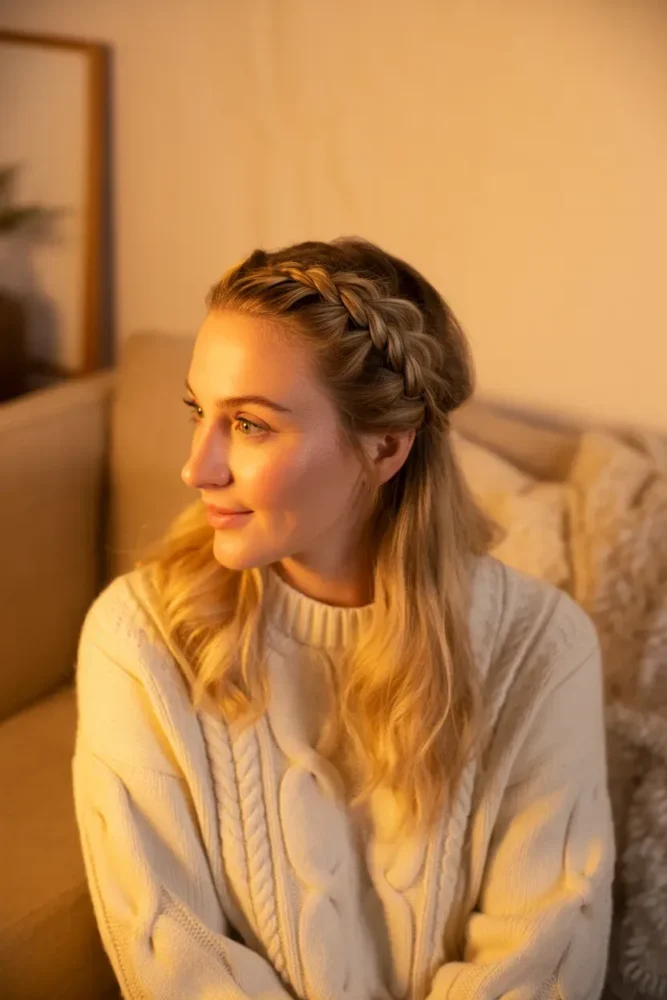 This subtle Winter Hair Braid adds detail without committing to a full braided style.