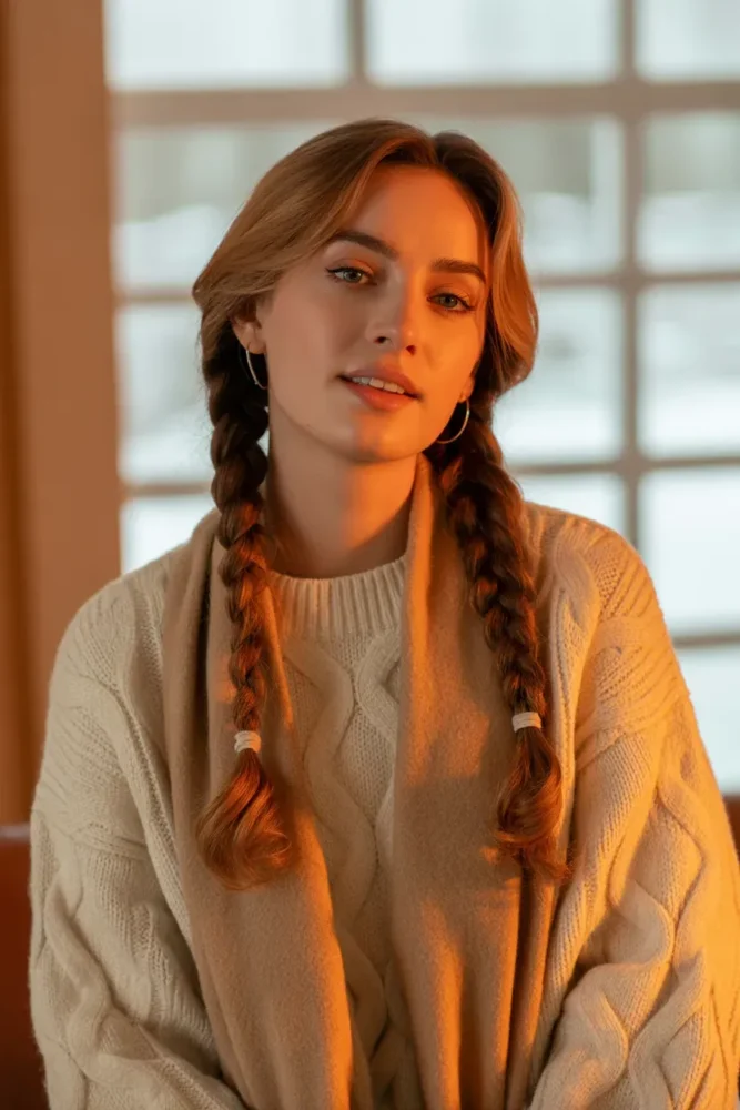 Loose, low pigtail braids feel cozy and nostalgic without looking childish.