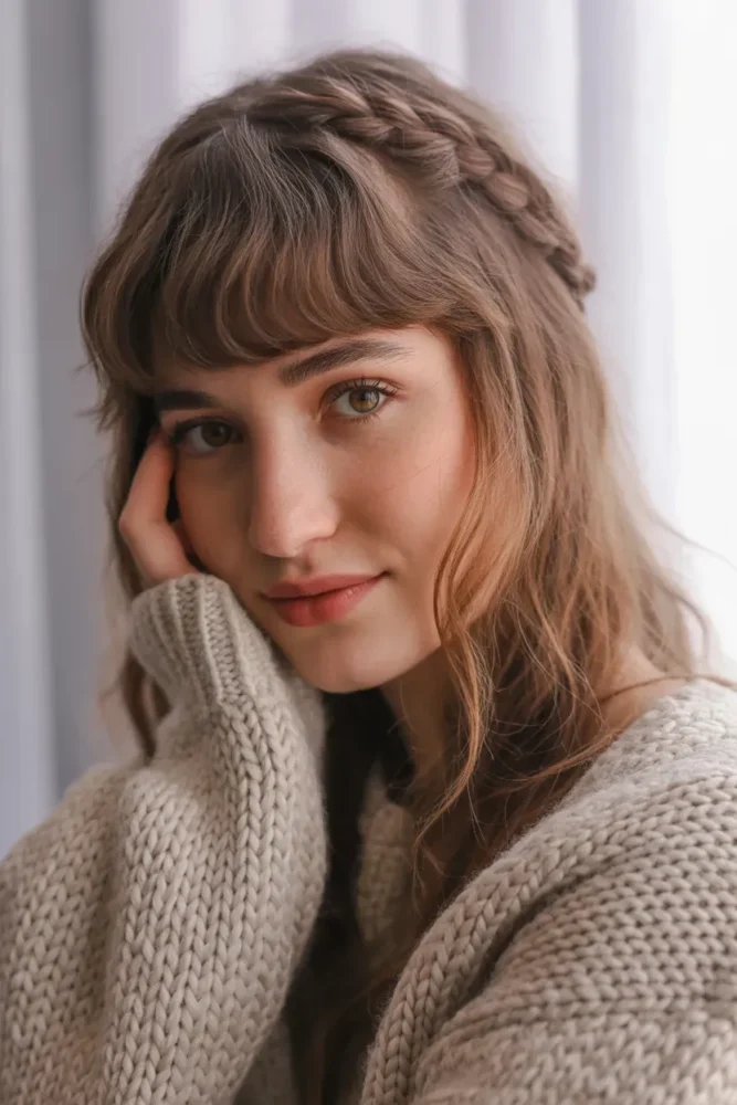 A half-up braid feels youthful and cozy, especially when paired with soft curls or natural texture during colder months.