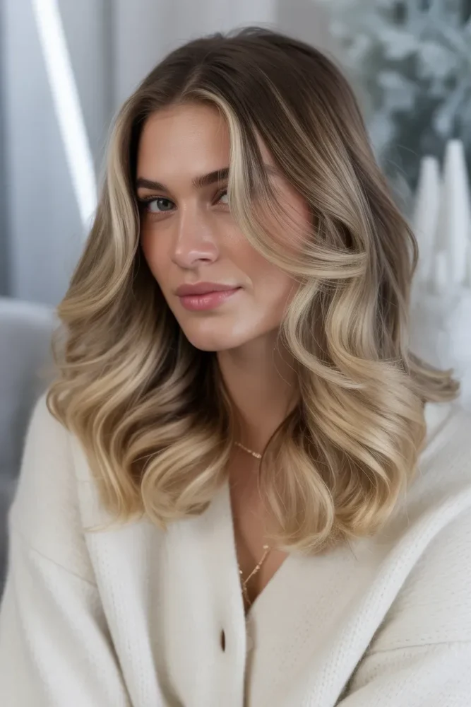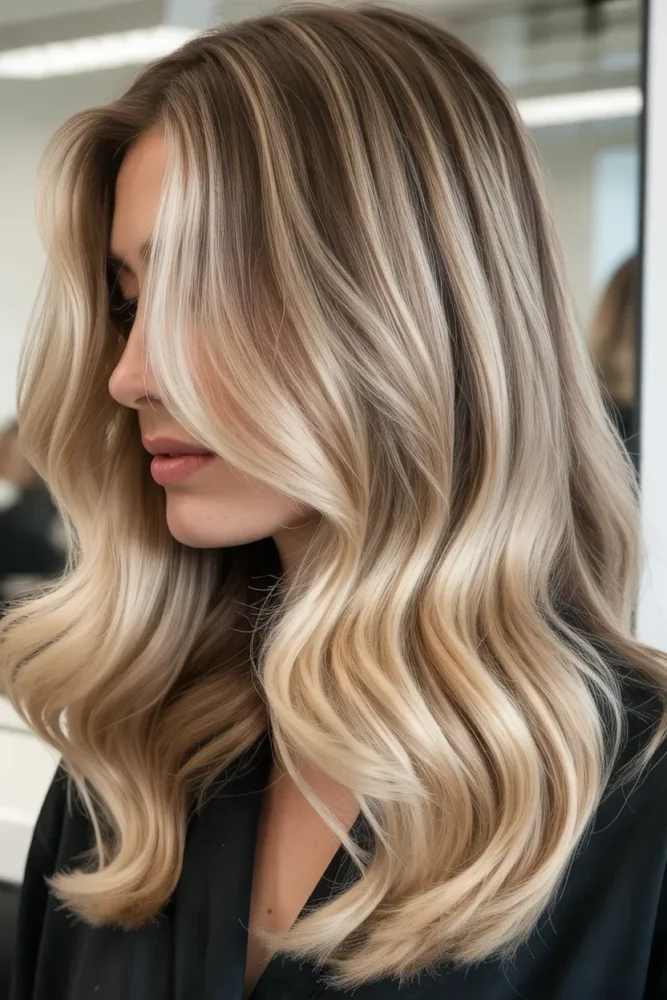 Smoky blonde balayage adds depth and softness, making hair look thicker and healthier.