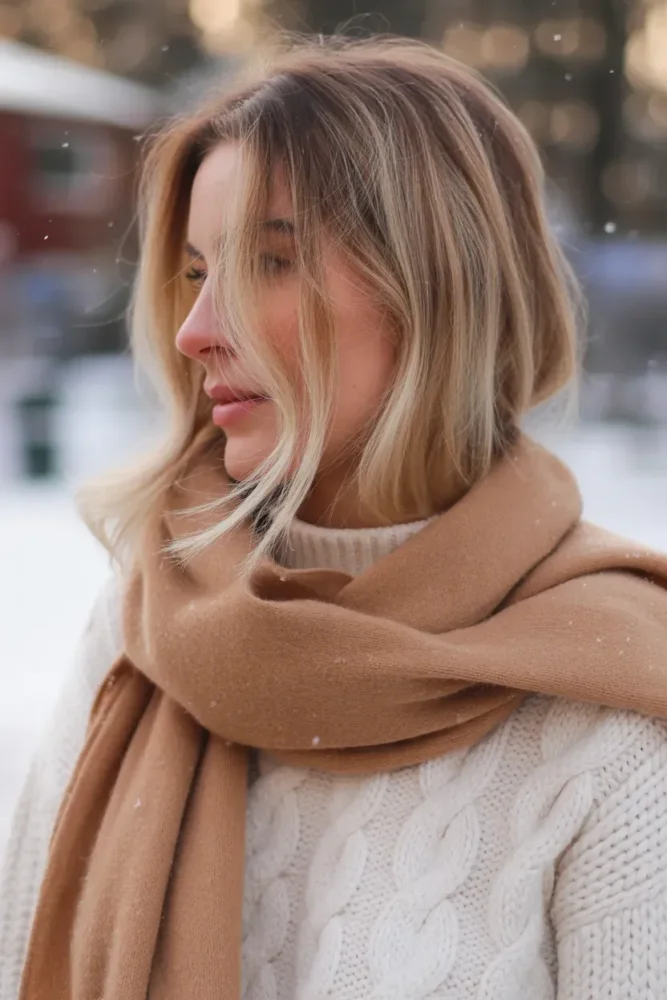 The blended tones grow out gracefully, saving salon visits during cold months.