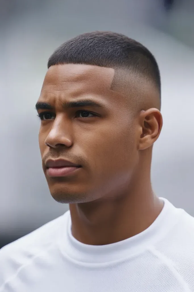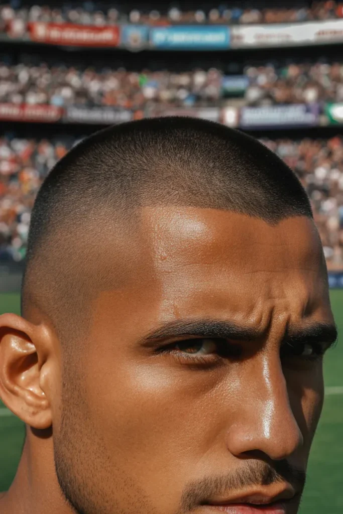 The buzz cut with a sharp lineup is a no-nonsense soccer classic.