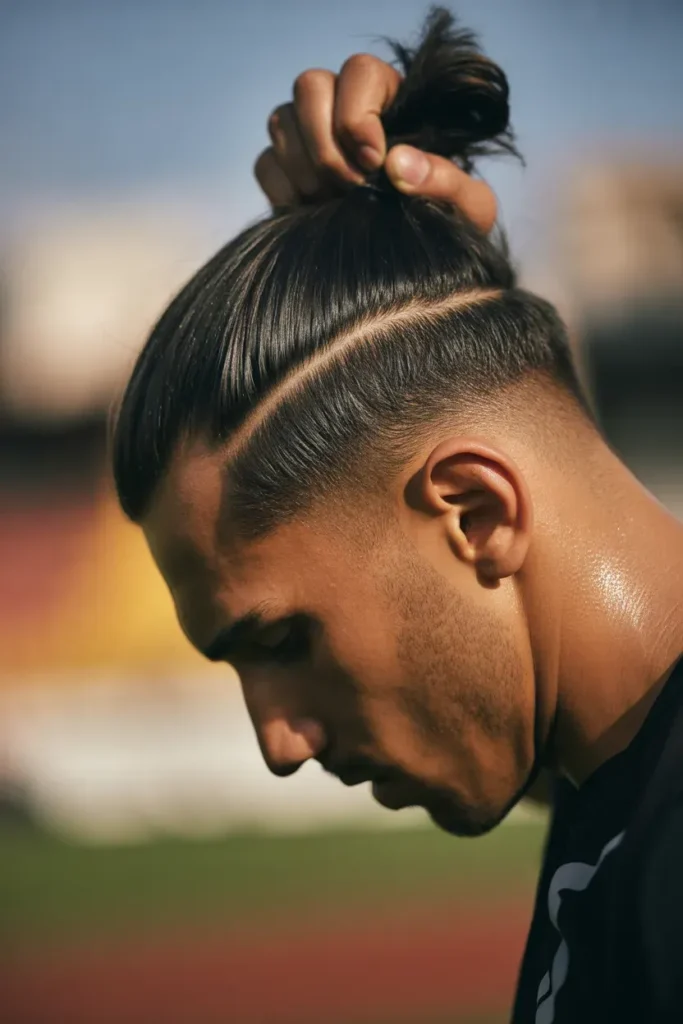 This hairstyle suits players with longer hair who want versatility—athletic during games and stylish off-field with multiple styling options.