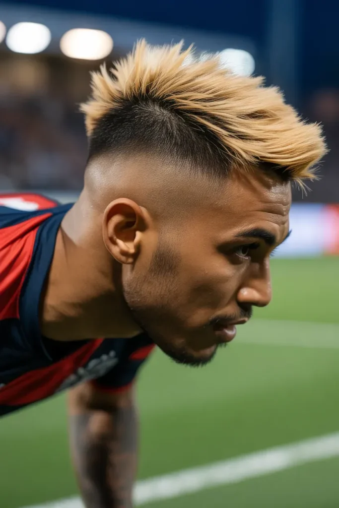 This style suits bold personalities who want their haircut to reflect confidence, creativity, and attacking energy without compromising match-day practicality.