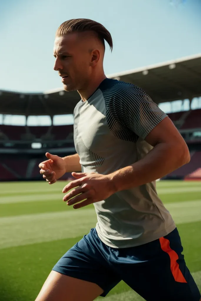 Ideal for disciplined players, this haircut offers versatility, comfort, and a professional image that works both on the pitch and in formal or casual settings.