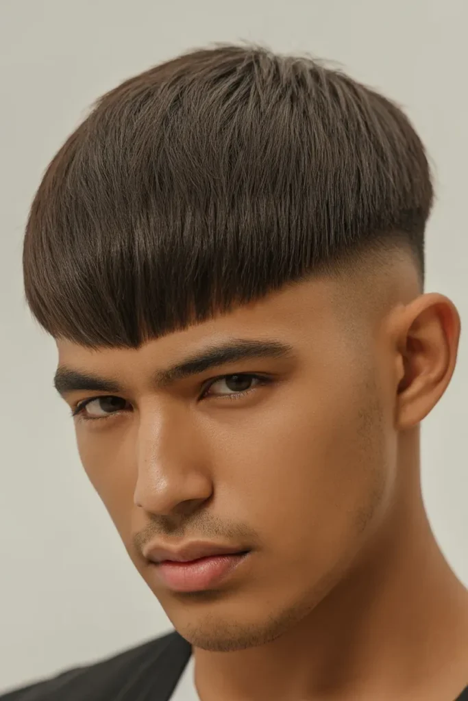 The modern bowl cut transforms a classic style into a trendy, sleek look.