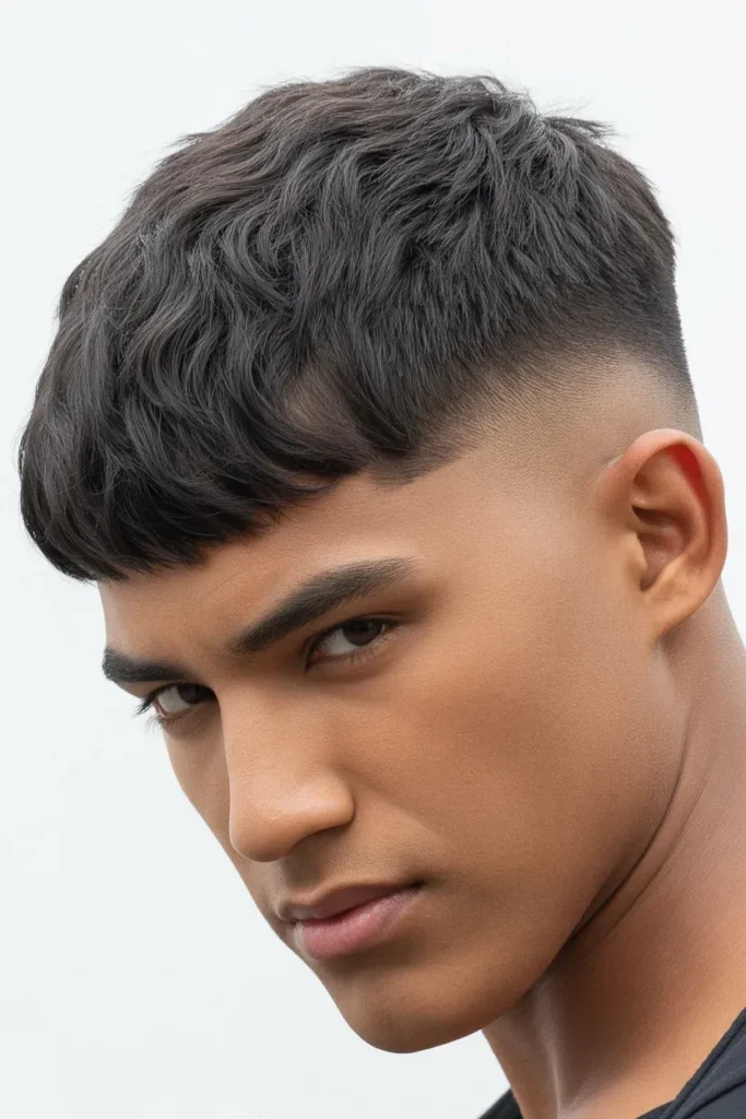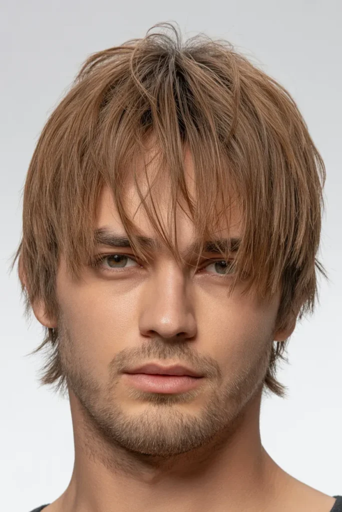Ideal for men who want a youthful, dynamic style, this haircut is versatile for casual outings, social events, or even creative workplaces where individuality meets sharpness.