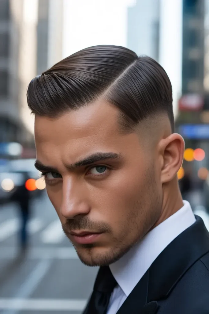 This haircut is perfect for men who want to make a statement while maintaining a sleek, professional appearance with minimal styling effort.