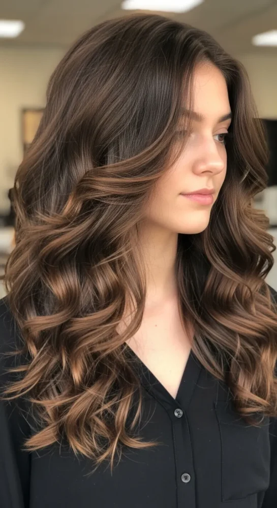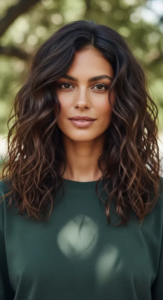 Long layers remove weight while allowing curls and waves to form naturally. This style keeps length intact but prevents the bottom from looking stringy or heavy.