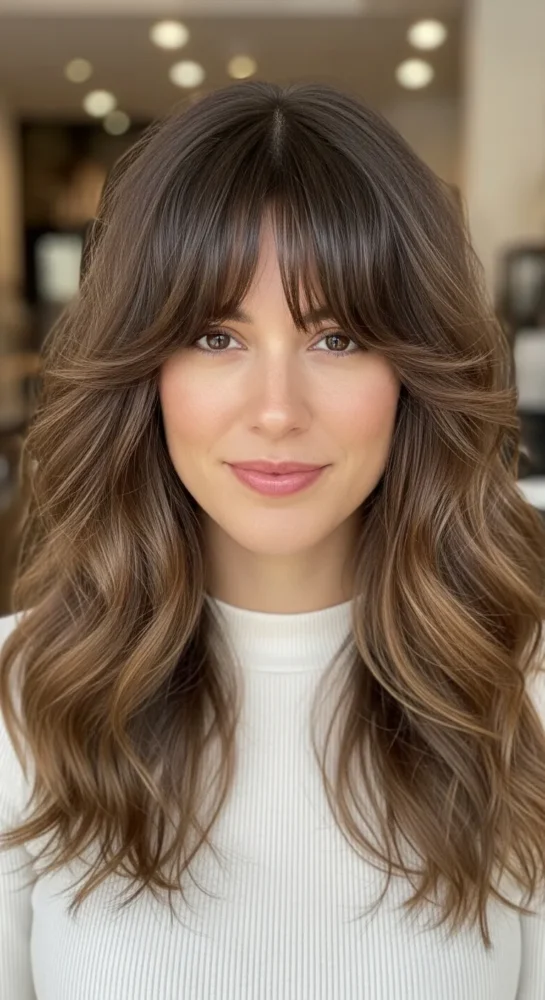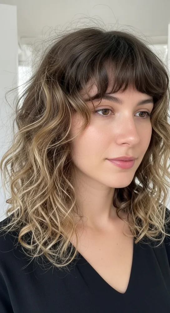 15. Wavy-Curly Hair With Wispy Bangs