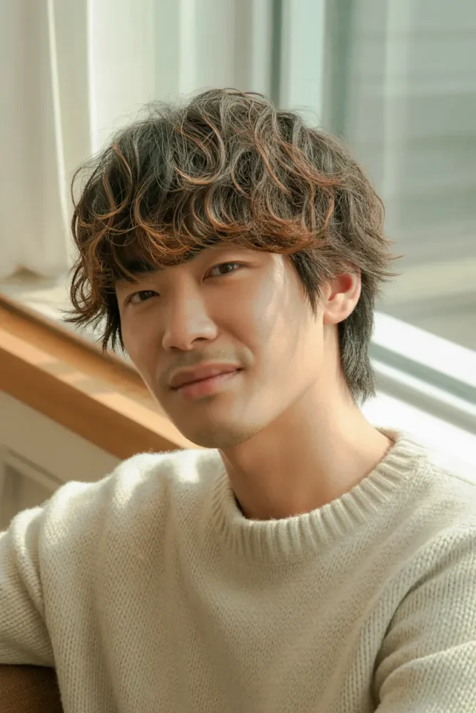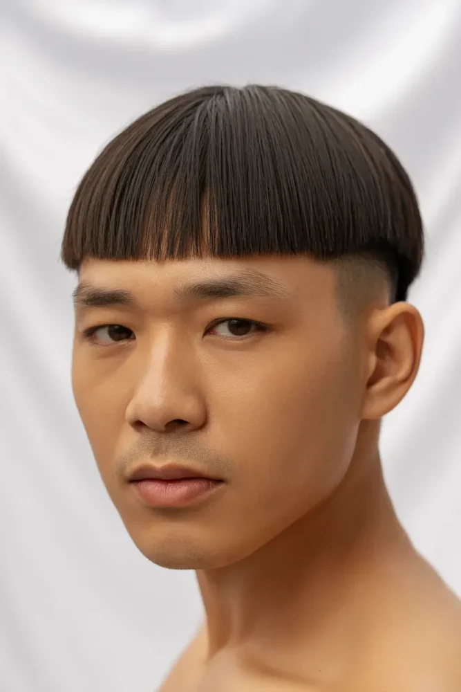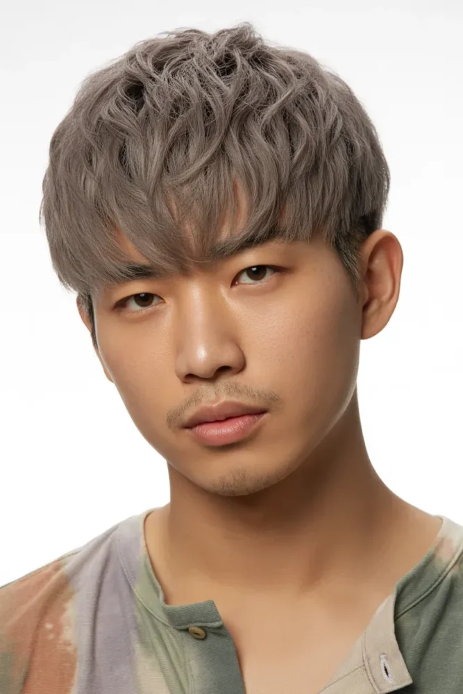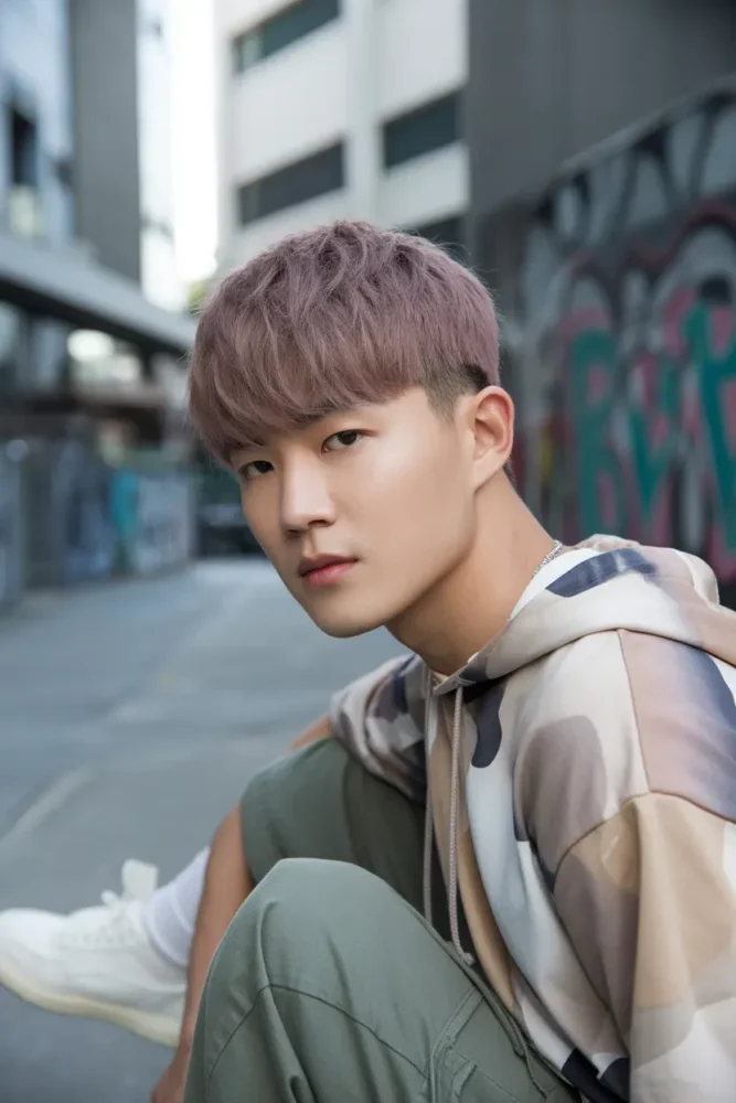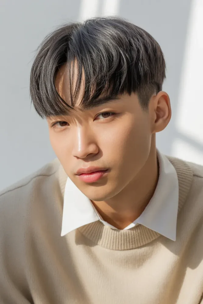 This style is popular in Korean fashion and works well for men who want a modern, youthful look with face-shaping benefits.