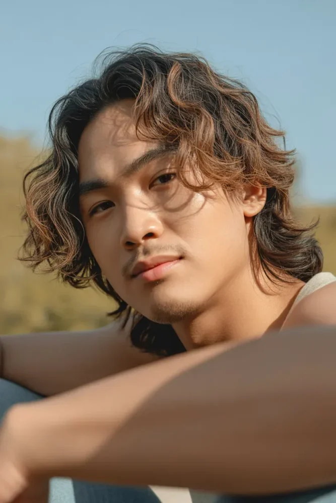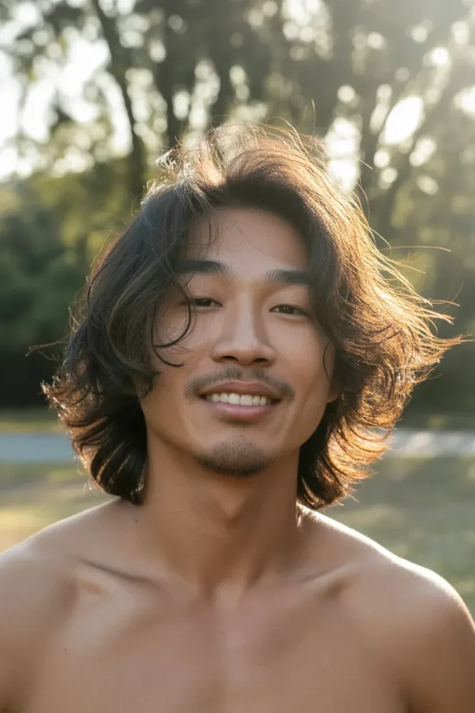 This hairstyle suits men wanting volume without aggressive styling and works exceptionally well for enhancing softer facial features.