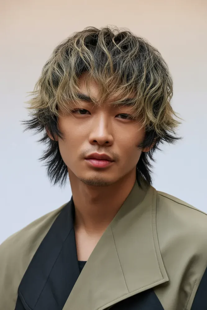 A layered wolf cut adds width and volume, making narrow faces appear more balanced.