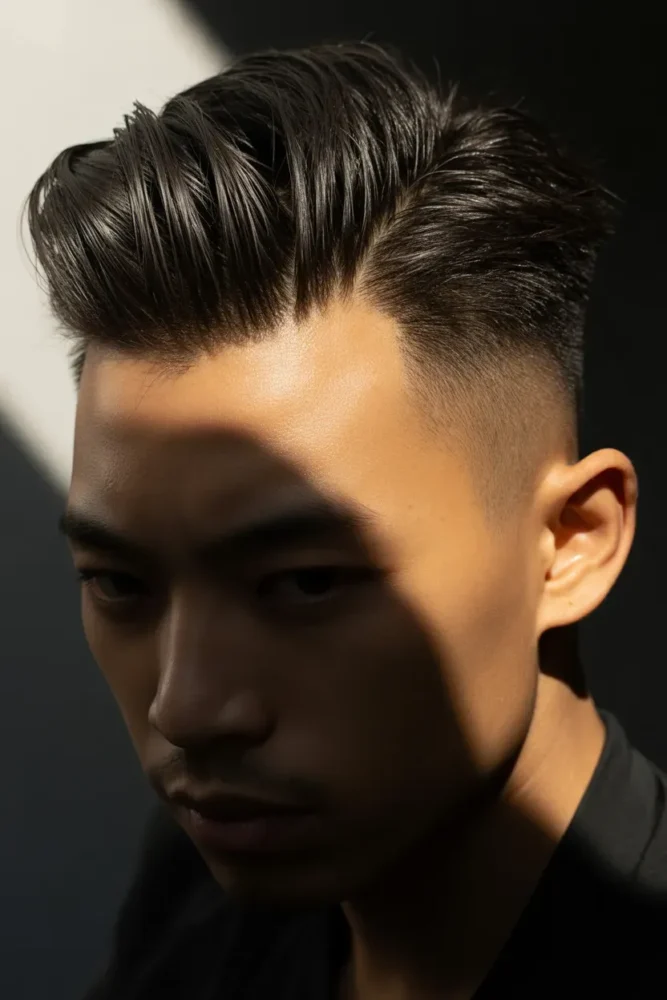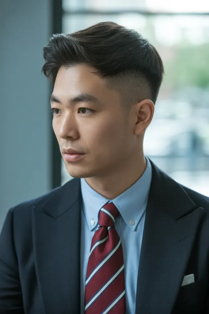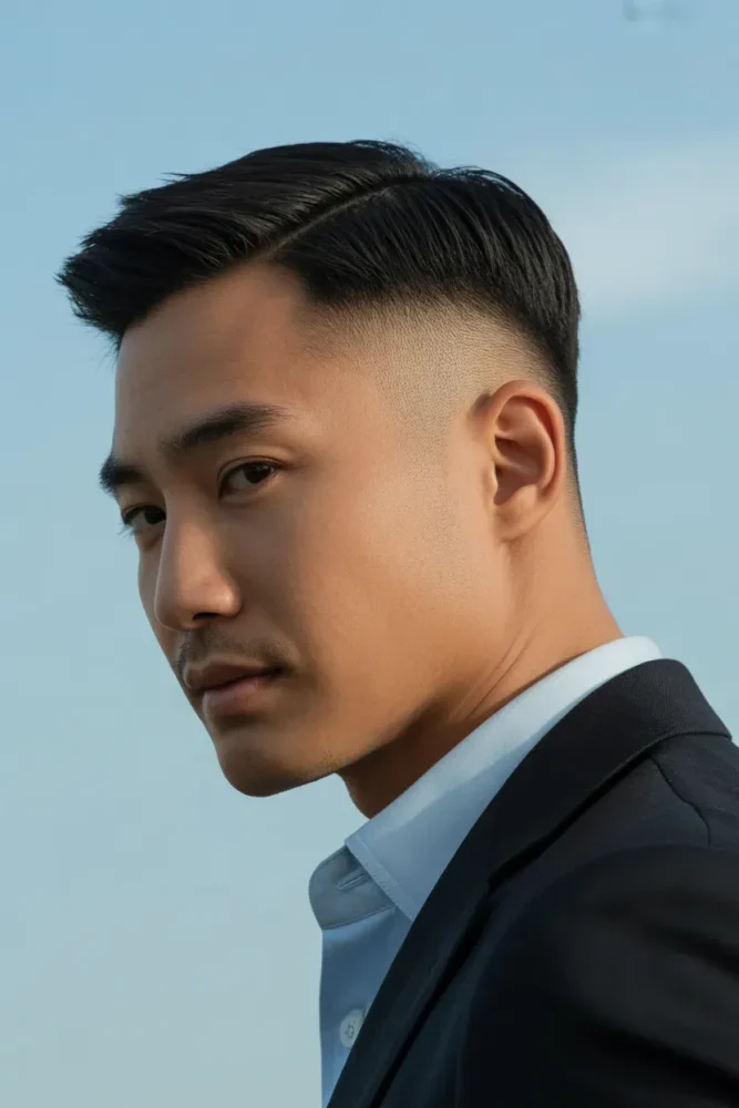 This hairstyle suits men who want a crisp, modern look that improves facial symmetry instantly.