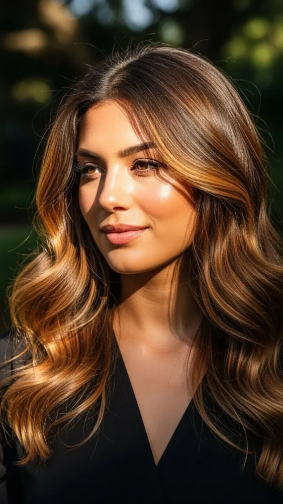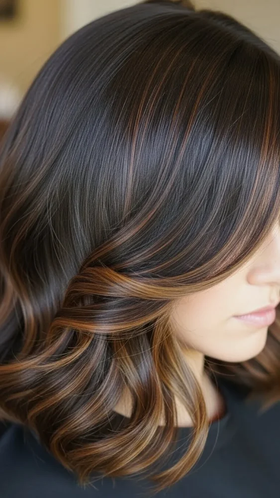 - Dark brown hair → rich amber or deep caramel
