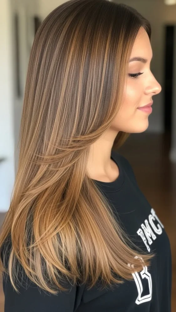 5. Caramel Highlights with Long Layers