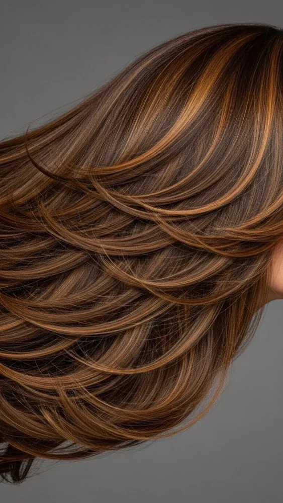 On brown hair, they add warmth and richness that complements cozy fashion and seasonal makeup trends.