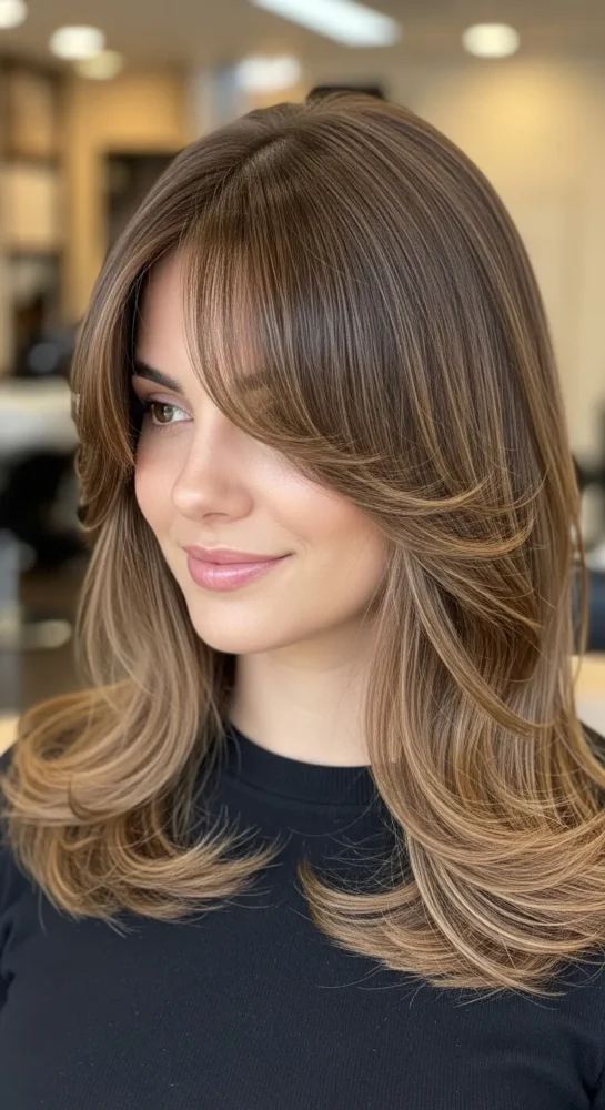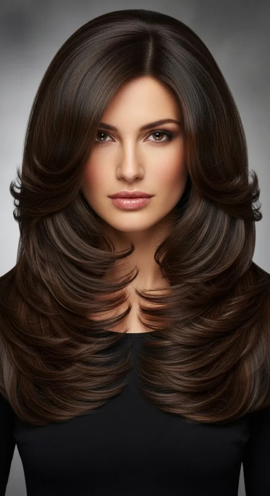 Whether you love long flowing layers, medium-length cuts, or rich brunette shades, there’s a version here that fits your lifestyle and face shape.