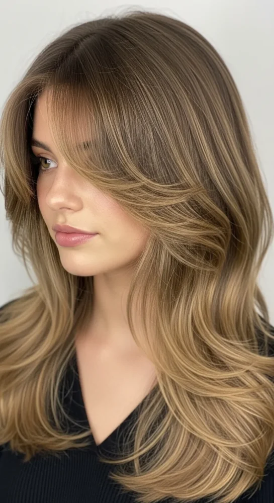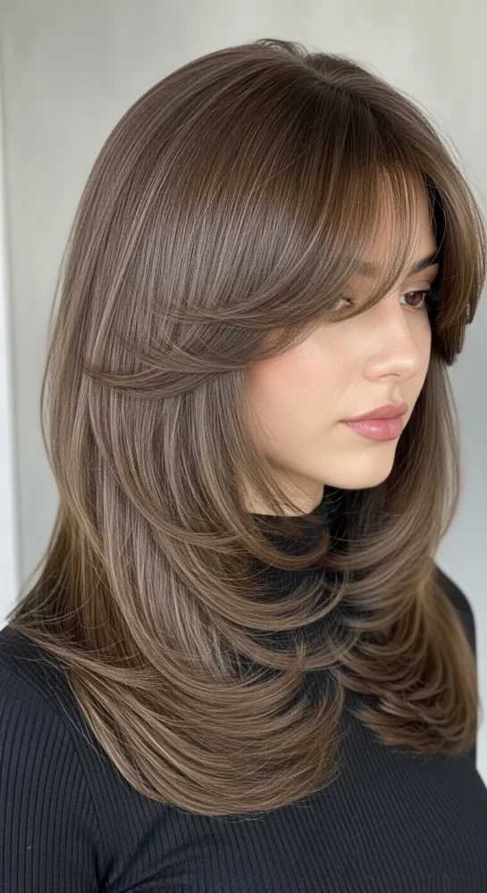 This style focuses on long, flowing layers that feel weightless. The curtain bangs open up the face, making it ideal for women who want elegance without a dramatic chop.