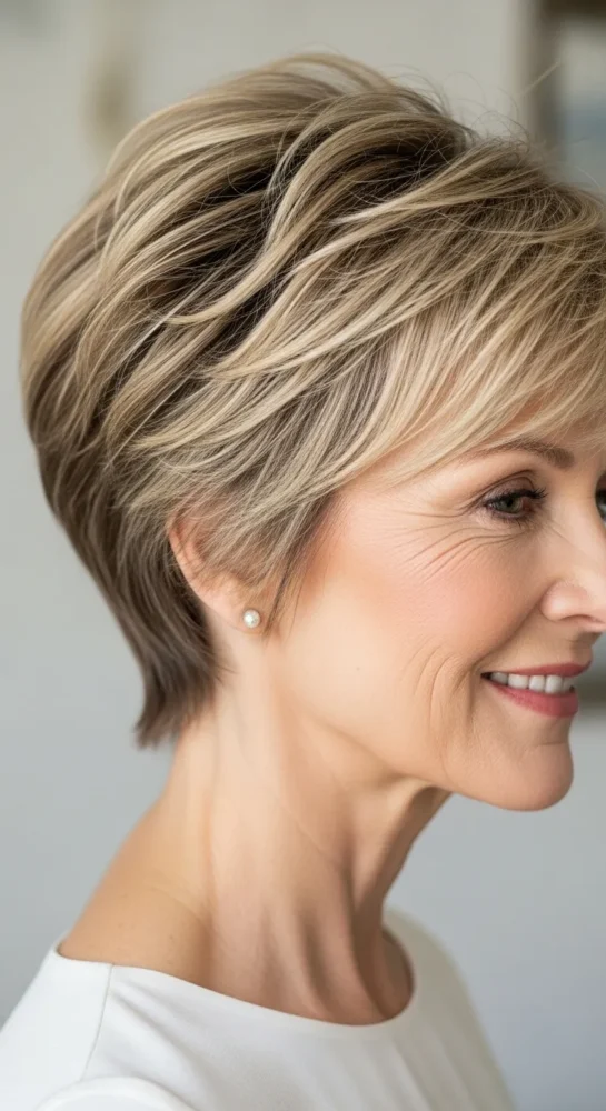 Extra volume at the crown creates a subtle lifting effect. This pixie style is perfect for women who want their hair to look fuller and more youthful without teasing or heavy products.