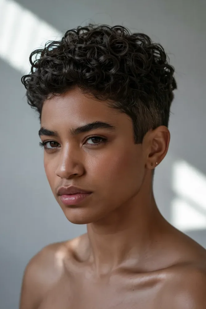 This cropped style uses strategic layering to boost curl definition. It avoids heaviness and keeps hair looking airy and intentional.