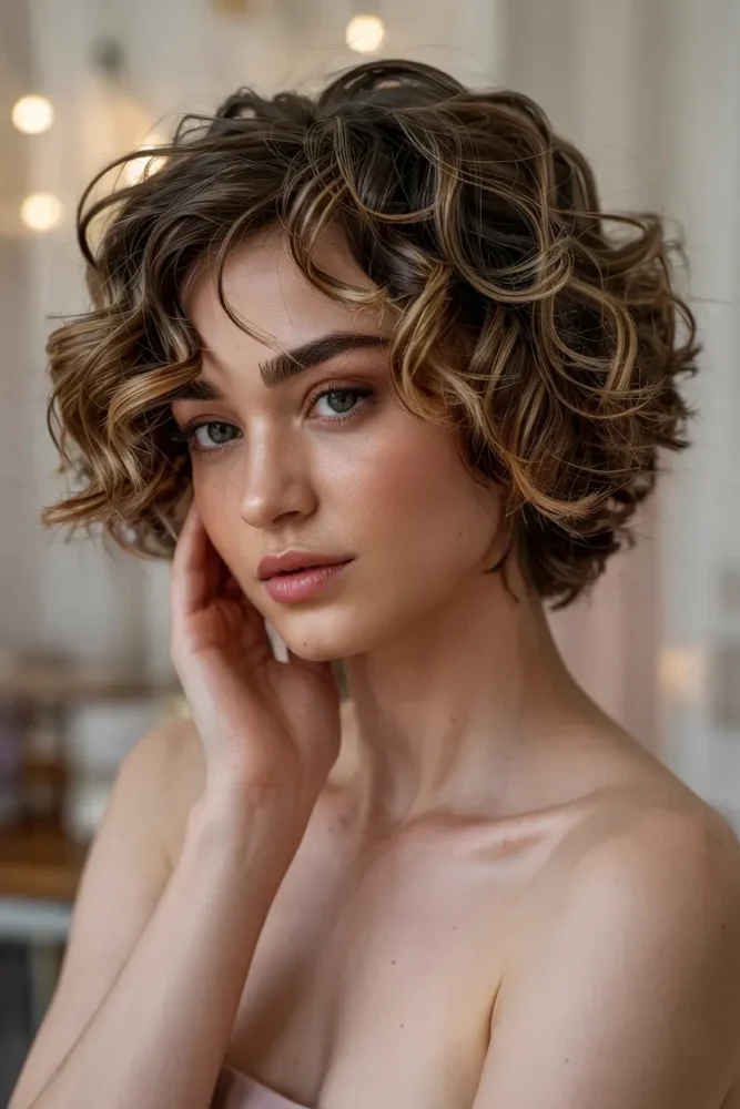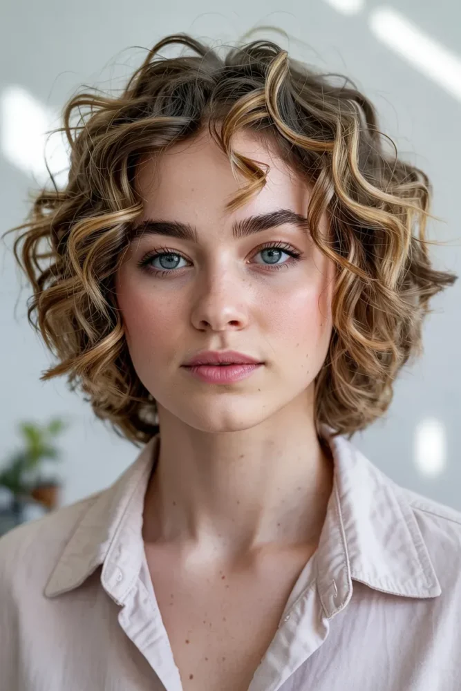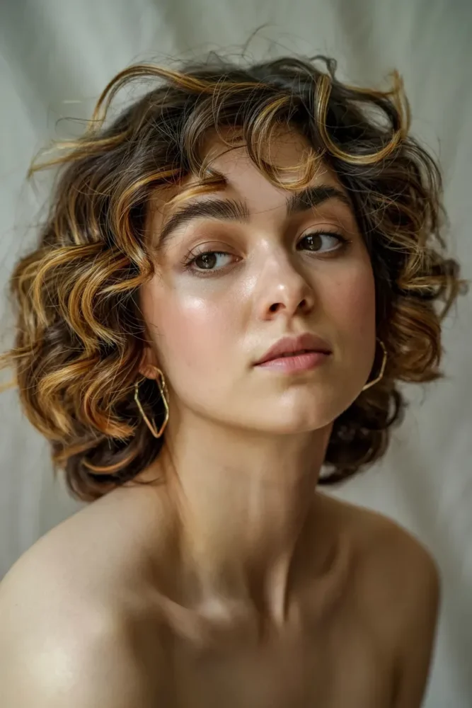 15. Short Curly Hair With Highlights