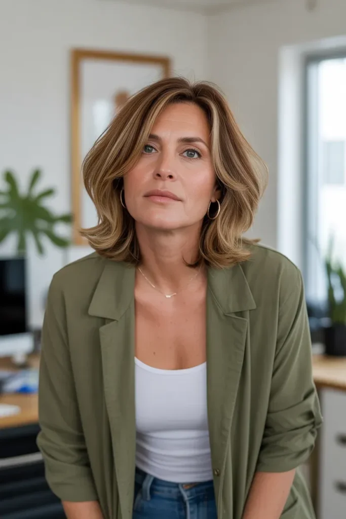 Perfect for women over 40, this style works for both casual outings and professional settings.