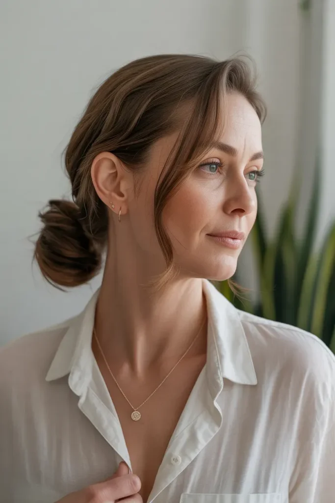 A twisted low ponytail is quick, chic, and perfect for women over 40.