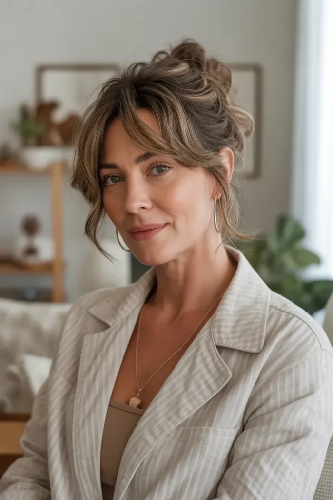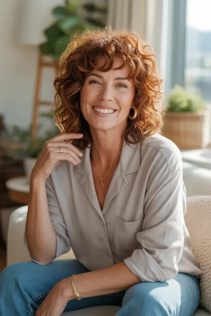 For women over 40, this look emphasizes natural texture and volume while framing the face elegantly.