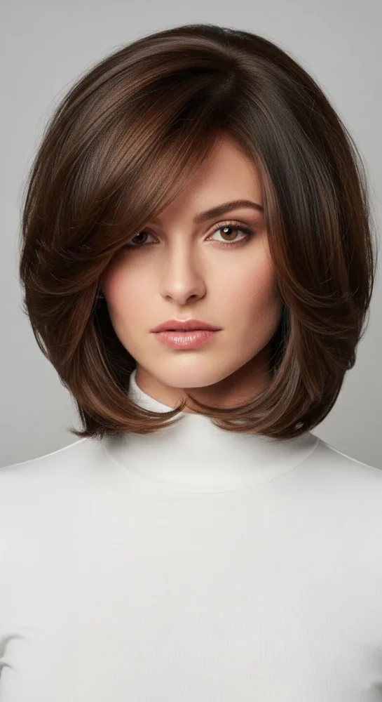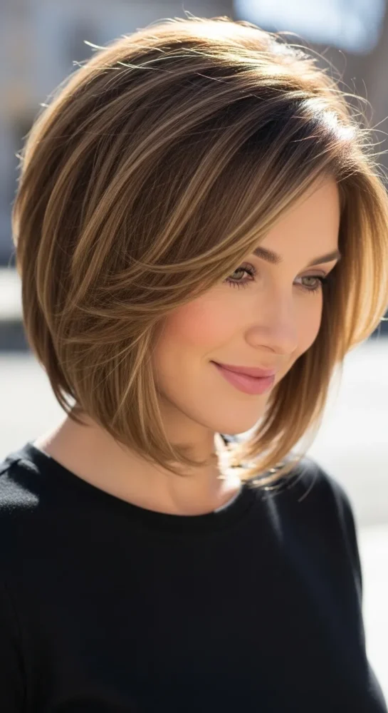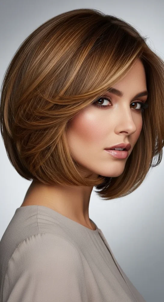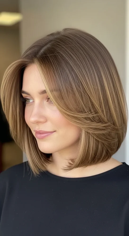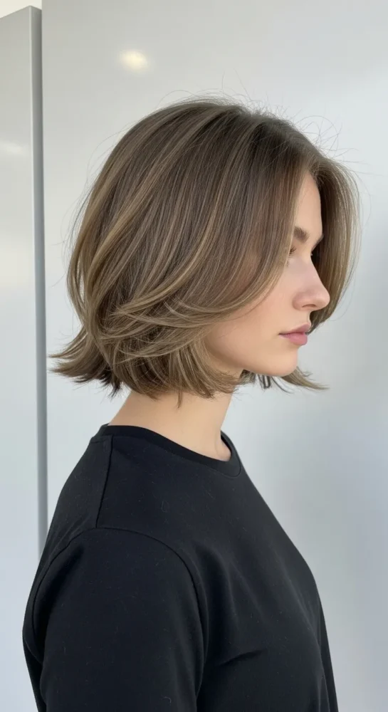 This timeless style sits just below the chin with soft feathered layers throughout. It’s perfect if you want subtle volume without going too trendy. Blow-dry with a round brush, and the layers naturally lift at the crown for an effortless everyday look.
