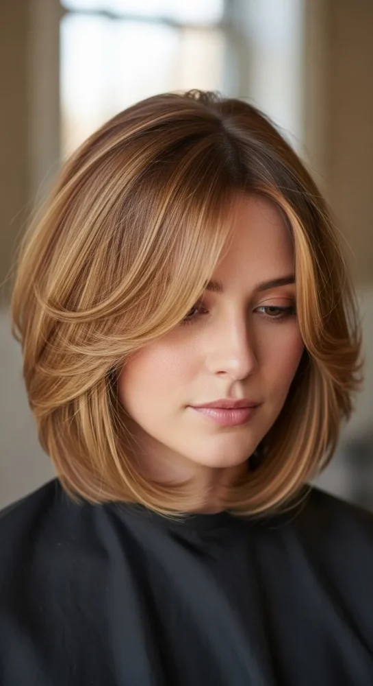 This style adds movement without harsh lines, making it incredibly flattering. Feathered layers soften facial features and give hair a youthful bounce without looking overstyled.