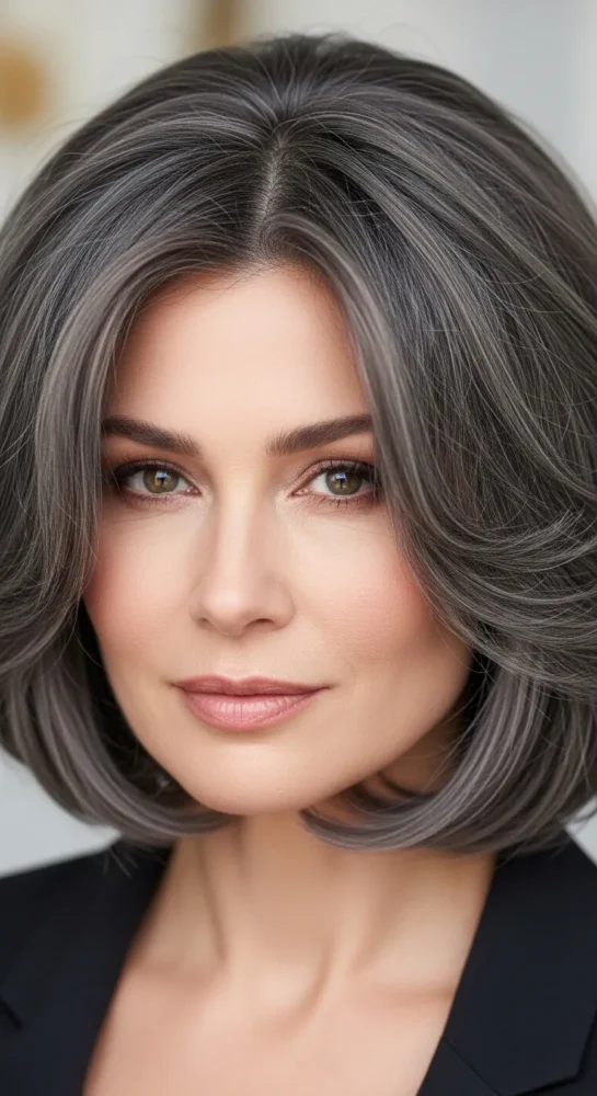 A medium-length feathered bob adds fullness without weighing hair down. The layers are light and strategic, making thin hair look thicker instantly. It’s ideal for women who want movement but still need length for styling flexibility.
