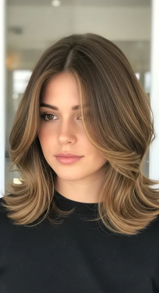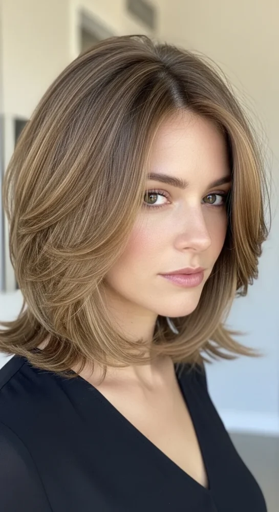 This length is a sweet spot for most face shapes. Feathered layers around the face soften features while adding bounce. It’s especially flattering if you want a professional yet relaxed hairstyle that works for work and weekends.